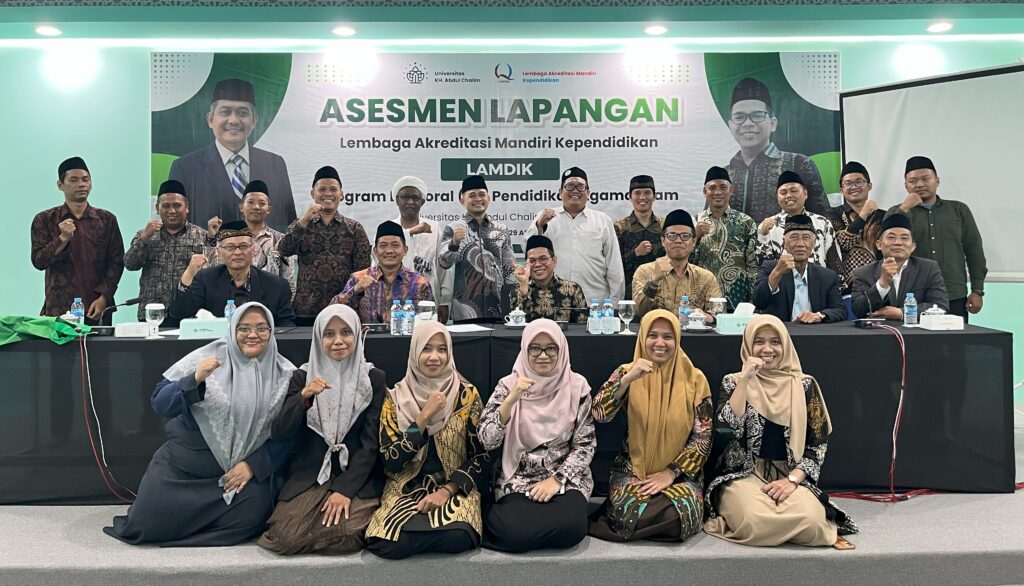 Mojokerto (28-29 April 2025) Universitas KH Abdul Chalim (UAC) Mojokerto sangat berbahagia akhirnya Program Studi Pendidikan Agama Islam (S3) dapat melaksanakan Asesmen Lapangan. Sebagaimana diketahui bahwa pada tanggal 19 Agustus 2024 Program Studi Pendidikan Agama Islam pada Program Doktor Universitas Pesantren KH. Abdul Chalim Pacet Mojokerto, Kabupaten Mojokerto memperoleh peringkat akreditasi sementara yaitu Baik sesuai keputusan Lamdik 1256/SK/LAMDIK/Ak-S/D/VIII/2024.